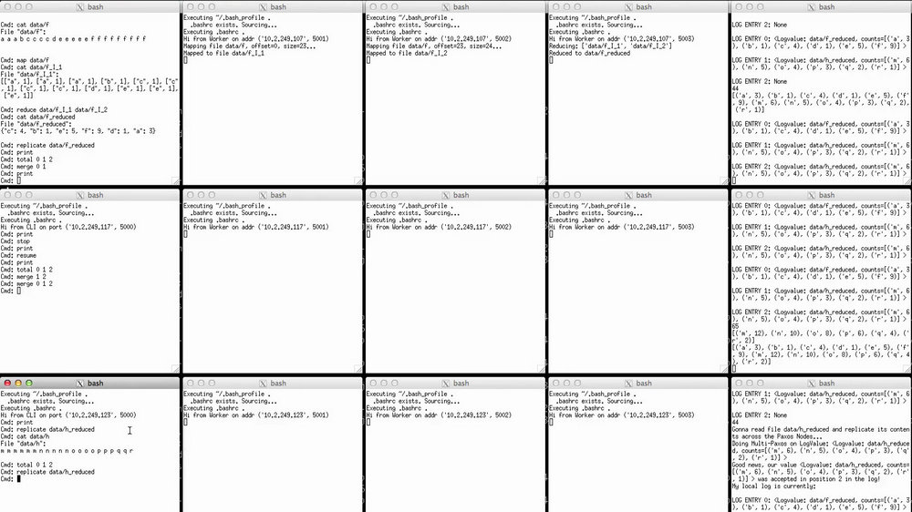 This project implements the MapReduce parallel computing algorithm and the Multi-Paxos distributed consensus algorithm. The code uses MapReduce to parallelize the computation of a word tally of several large text files; then it uses Multi-Paxos to distribute those tallies among two other computers in the form of a replicated log. The code runs on the Eucalyptus Cloud Computing infrastructure (similar to AWS).